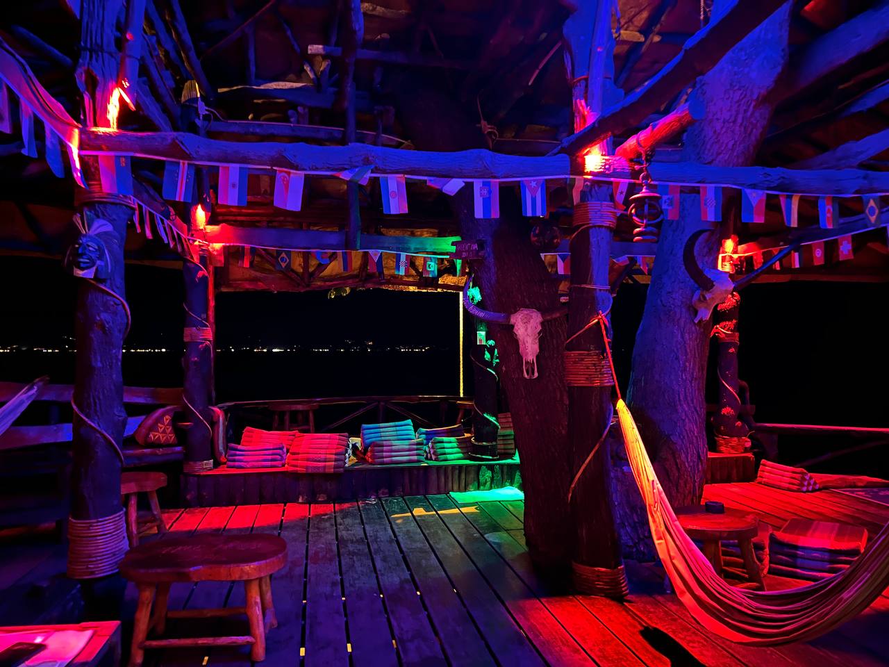 Rainbow Tree House is a mellow sunset bar right by the water, built mostly from wood and styled like a real treehouse. It’s known for its relaxed atmosphere and a beautiful west-coast view — especially during sunset.