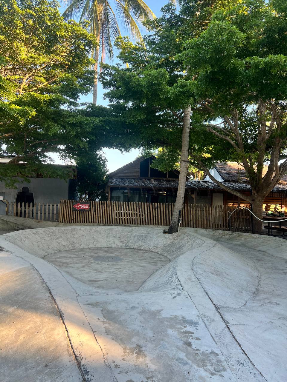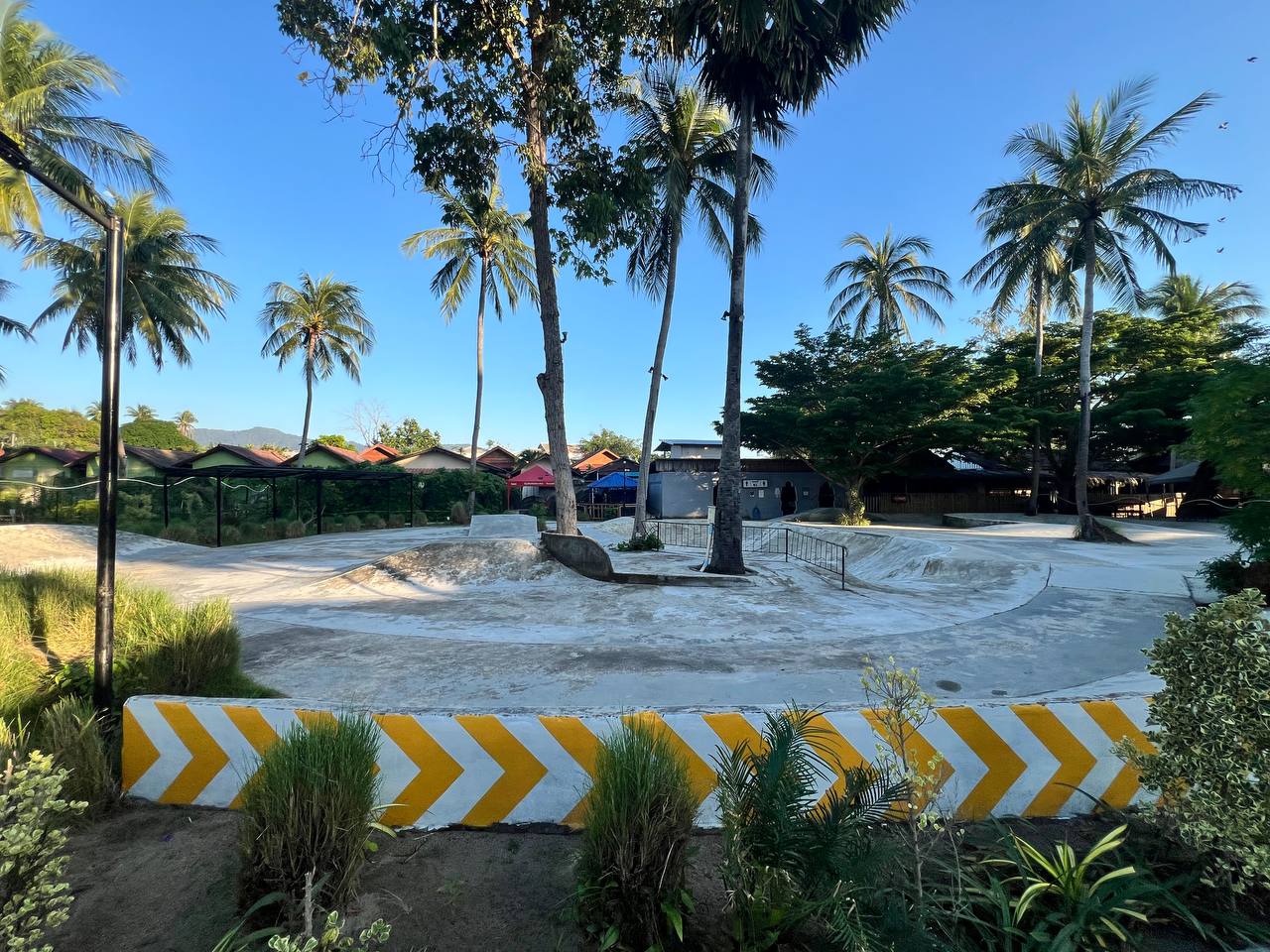 Этот Skatepark — пока единственная полноценная площадка на Пангане, где можно нормально покататься на скейте с рампами и горками. Парк бетонный, с несколькими разгонками, квотерами и элементами, на которых удобно учиться базовым трюкам, делать развороты и просто кататься для удовольствия.