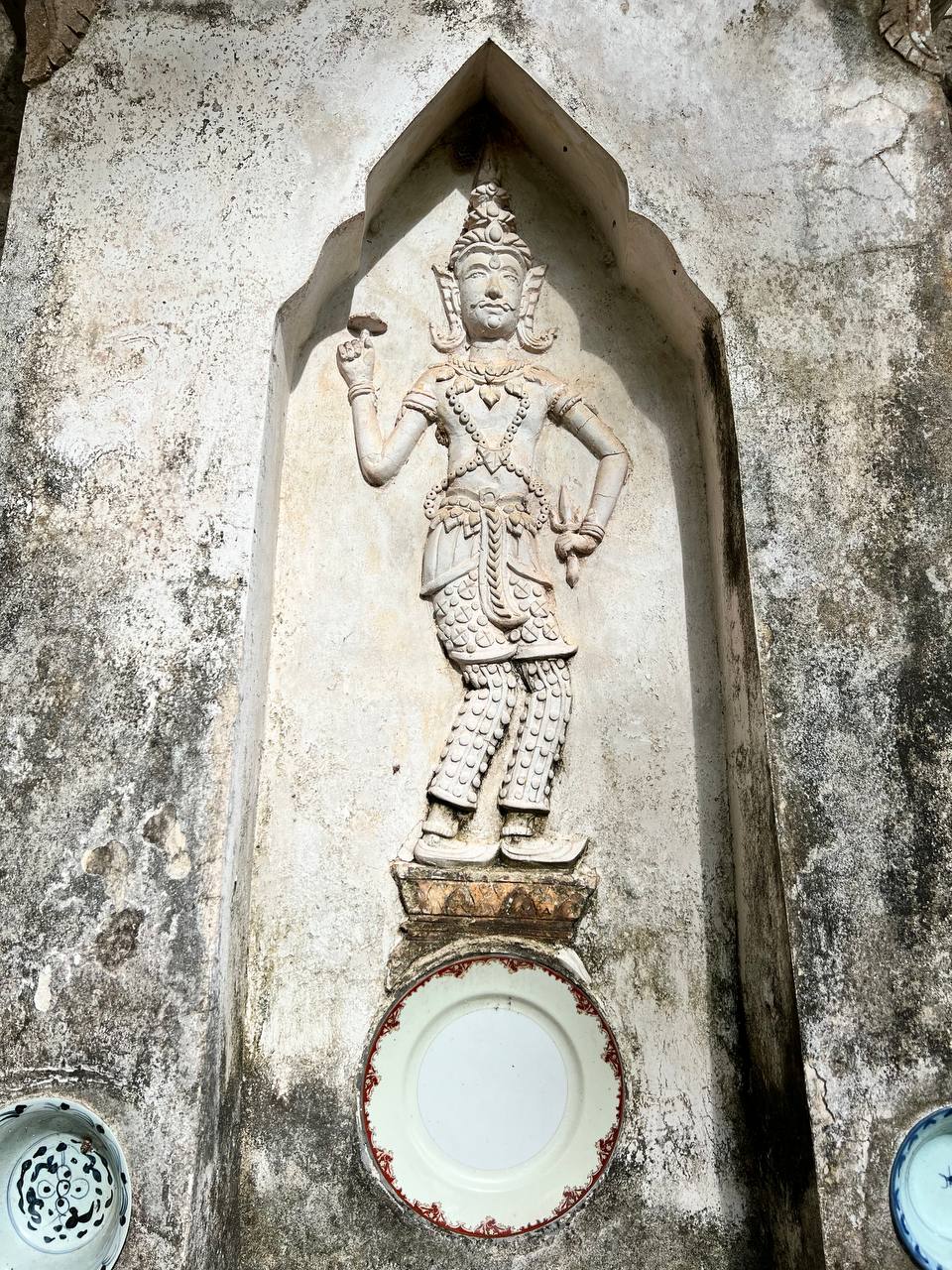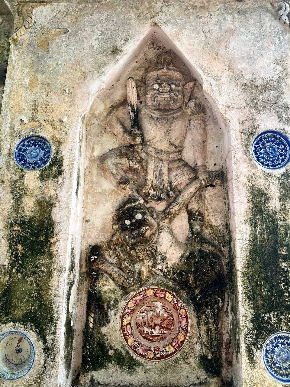 • Первая чеди — самая целая: квадратная пагода с «двенадцатью выемками», сложенная из кирпича и раствора, с декоративной керамикой и элементами китайского стиля (в том числе мотив Гаруды, побеждающей Змея).