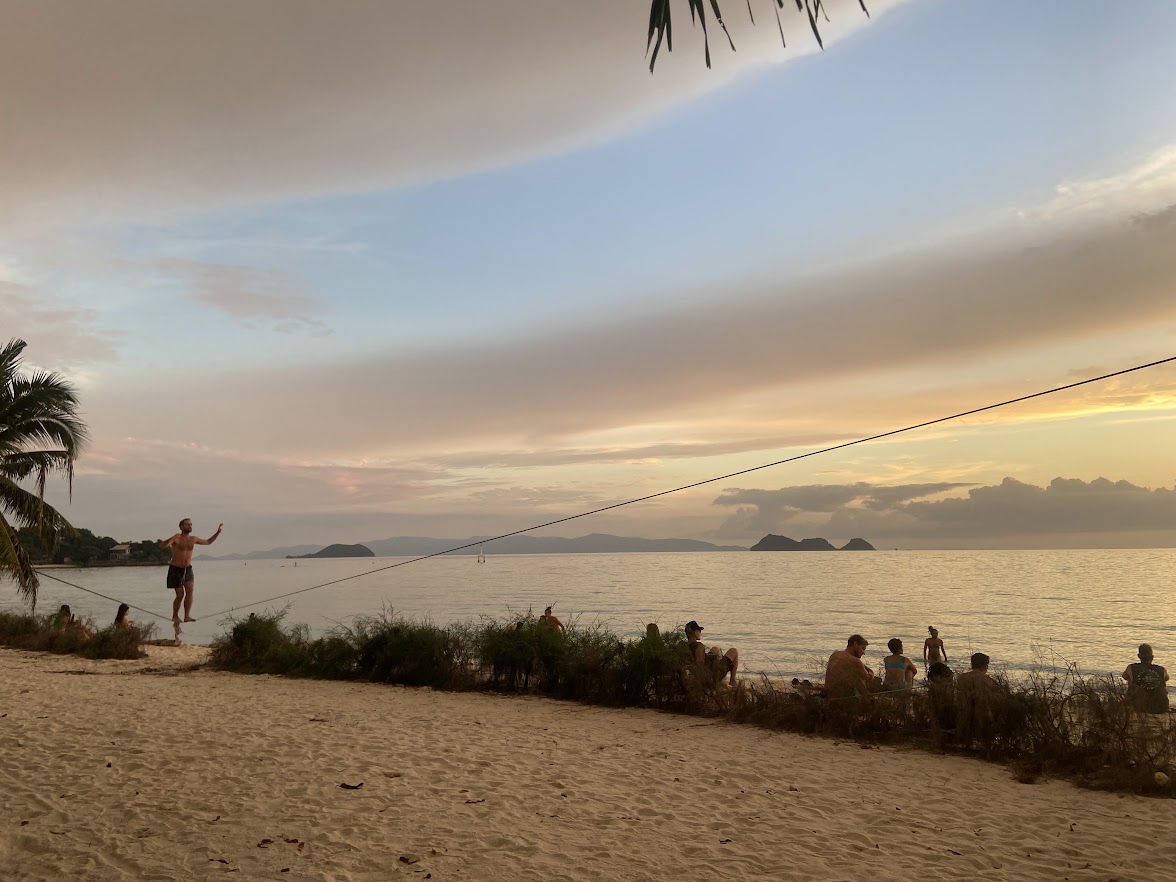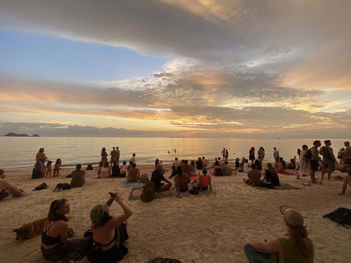 Zen Beach на Пангане — это спокойное место, где музыканты и йоги собираются около 6 вечера. Пляж является домом для двух кафе, а справа находится неофициальный нудистский пляж. Это место предлагает уникальное сочетание расслабления и сообщества, что делает его популярным направлением для тех, кто хочет отдохнуть и насладиться природной красотой острова и его расслабленной атмосферой.