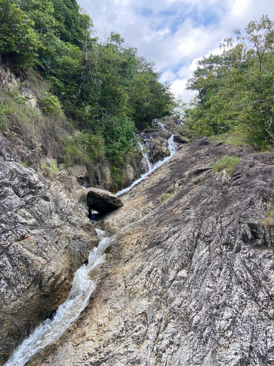 Сам водопад больше похож на живописный ручей с небольшими каскадами, создавая спокойное место для отдыха. Для любителей приключений есть тропа, ведущая от водопада к ближайшему пляжу, добавляя путешествию элемент исследования.
