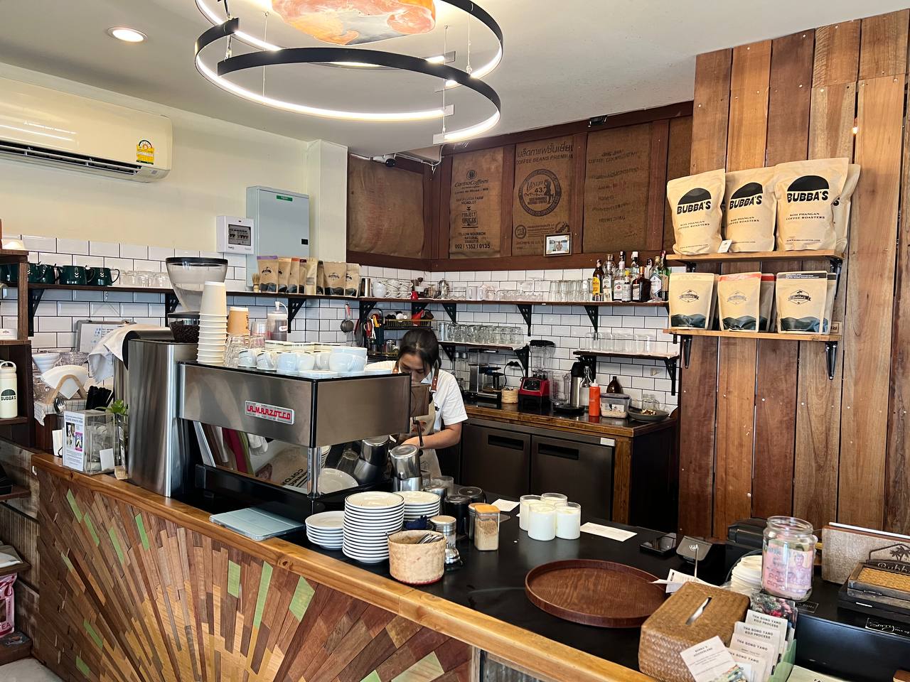 Это уютное кафе на Пангане славится своими вкусными завтраками, обедами и ароматным кофе, который подается весь день. В меню — блюда, приготовленные из локальных и качественных ингредиентов. Мясо и нарезки поставляются от Sloanes, выпечка готовится ежедневно, рыба и морепродукты покупаются на рынках острова, а фрукты — в местных лавках.