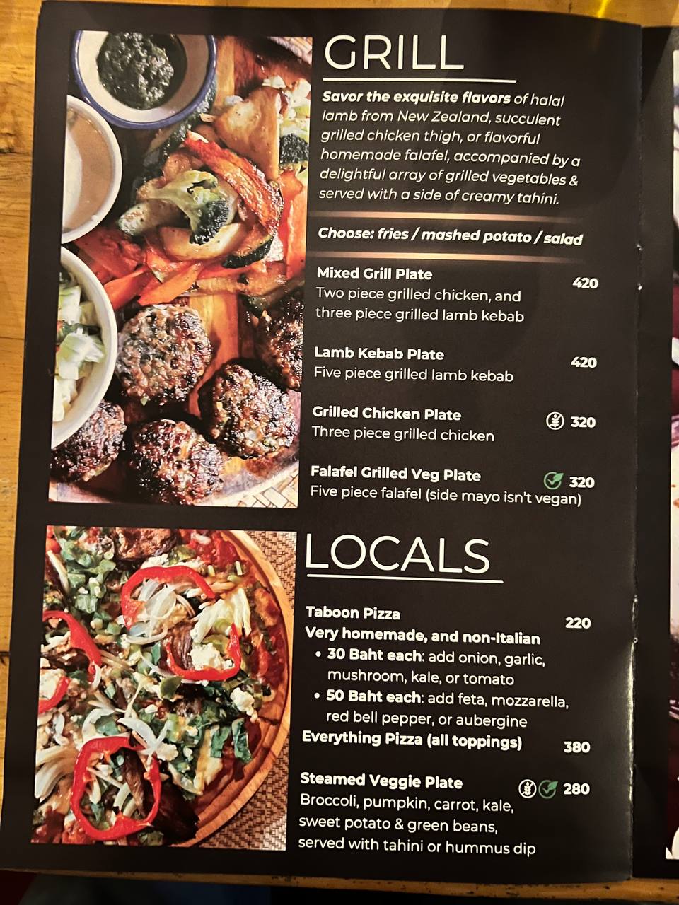 Среди других достоинств — пита с бараниной и необычные десерты, такие как кокос в шоколаде. Кафе предлагает расслабленную атмосферу с возможностью сидеть на подушках на полу или на удобных стульях. Тёплый декор, мягкое освещение и вентиляторы создают уютную обстановку, идеально подходящую для неспешного обеда. Удачное расположение рядом с магазинами и пляжами делает это место отличным выбором для вкусного и приятного времяпрепровождения.