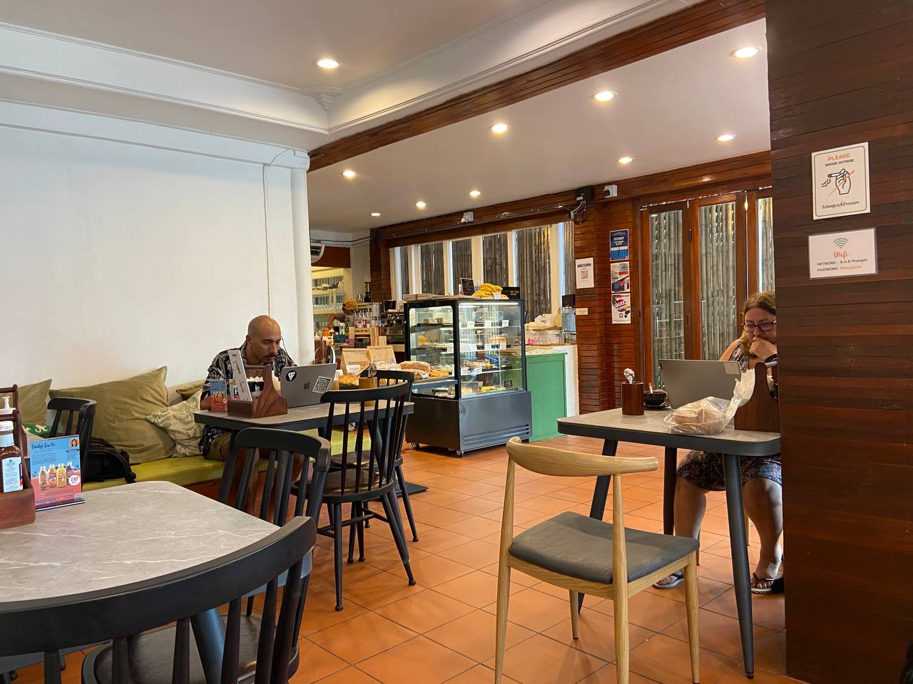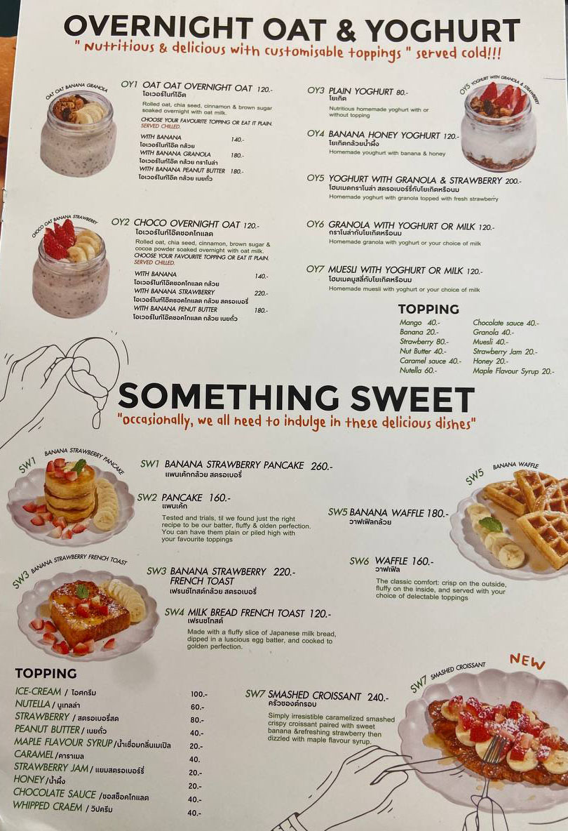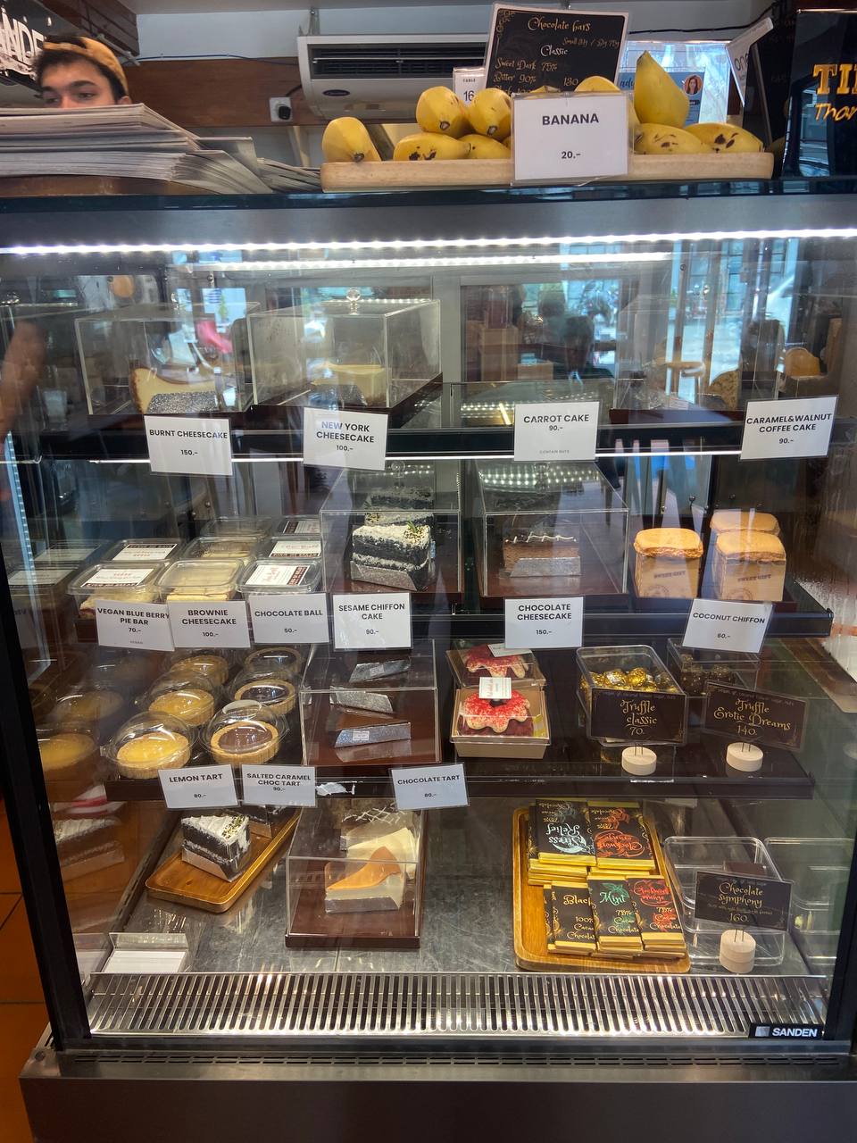 Несмотря на высокое качество, цены остаются вполне доступными: большинство тортов стоит от 90 до 140 бат, а маффины всего от 40 бат. Плюс, каждый день есть позиции с 50% скидкой, что делает посещение ещё выгоднее. Атмосфера расслабленная, с кондиционером и дружелюбным персоналом, идеально подходит для семейных обедов и встреч с друзьями. К тому же кафе ориентировано на детей, предлагая множество полезных блюд.