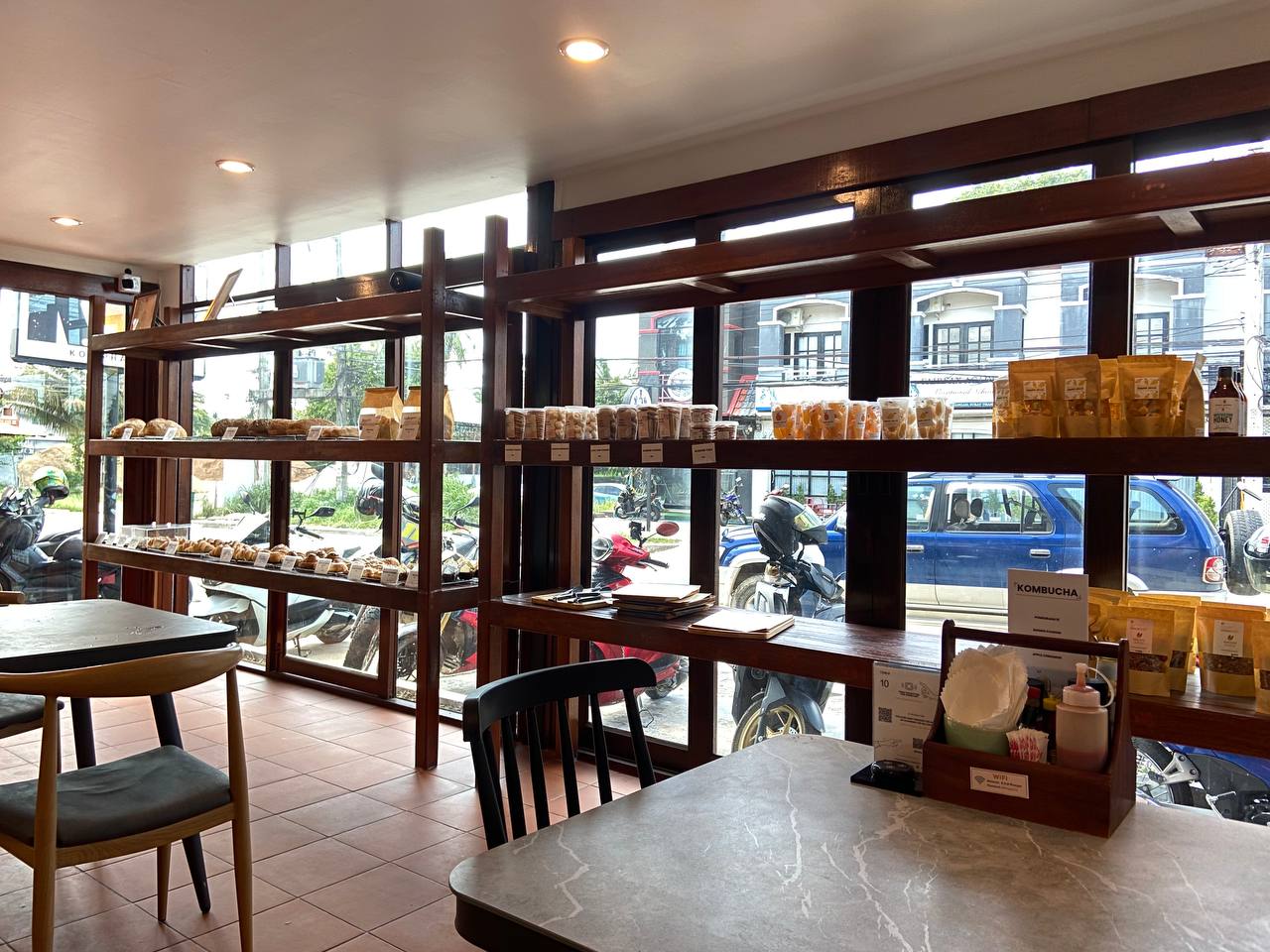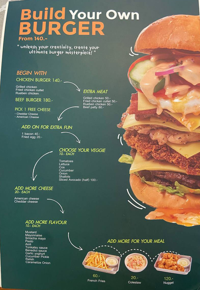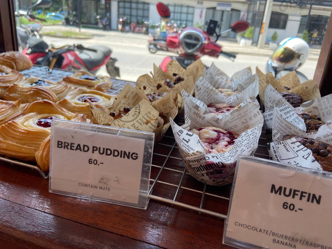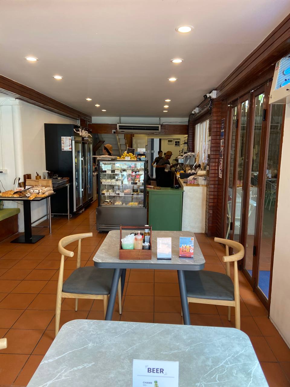 Несмотря на высокое качество, цены остаются вполне доступными: большинство тортов стоит от 90 до 140 бат, а маффины всего от 40 бат. Плюс, каждый день есть позиции с 50% скидкой, что делает посещение ещё выгоднее. Атмосфера расслабленная, с кондиционером и дружелюбным персоналом, идеально подходит для семейных обедов и встреч с друзьями. К тому же кафе ориентировано на детей, предлагая множество полезных блюд.