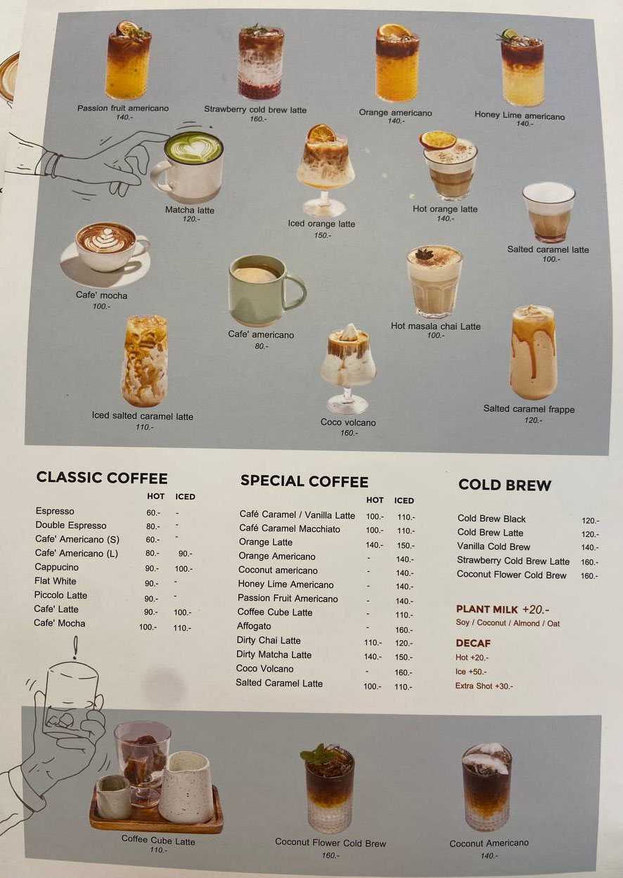 Одной из особенностей Café K.O.B является обширное меню, включающее свежую выпечку, тайские блюда и разнообразные напитки. Особенно стоит отметить их напитки с оригинальными вкусами, идеально сочетающимися с выпечкой. Обязательно попробуйте их знаменитые чизкейки — как с поджаренной корочкой, так и в нью-йоркском стиле — оба не слишком сладкие и приготовлены из качественных ингредиентов.