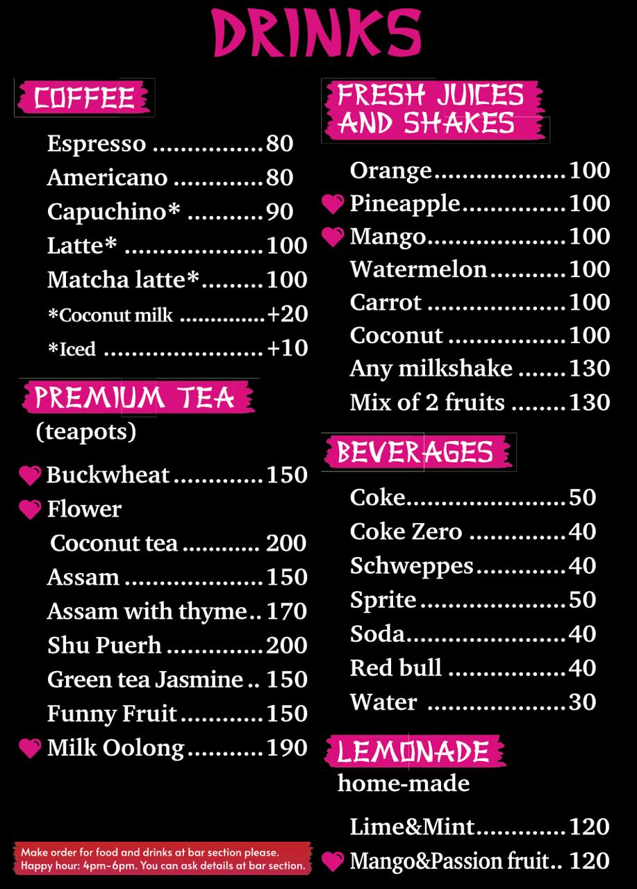 Sushi Love — уникальное место на острове, где японская, русская, мексиканская и европейская кухни встречаются в одном меню. Здесь можно насладиться свежими суши и сашими, сочными бургерами, традиционными мексиканскими тако и многими другими блюдами. Разнообразное меню подойдёт как для любителей кулинарных экспериментов, так и для тех, кто предпочитает знакомые вкусы.