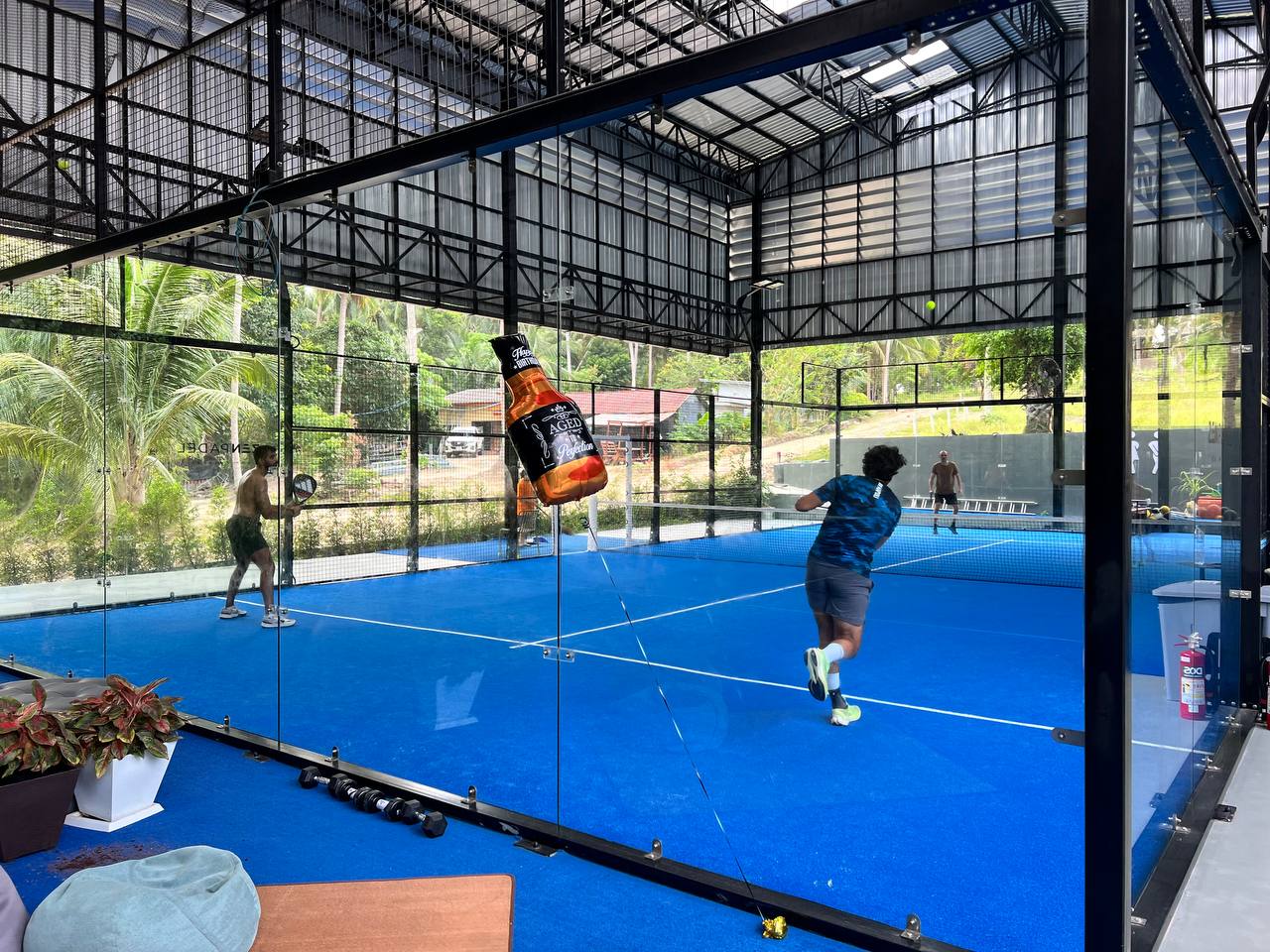 Zen Padel Phangan — это полноценное пространство для любителей падела на острове. Здесь три современных корта, подходящих как для дружеских игр, так и для более серьёзных матчей. Площадка продумана так, чтобы было комфортно играть в любое время дня — от утренних сессий до вечерних игр.